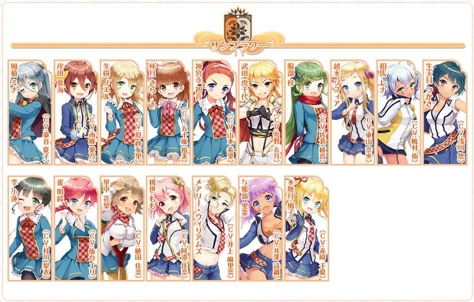 聲優表:赤﨑千夏・浅倉杏美・阿澄佳奈・荒川美穂・井澤詩織・石原夏織・井上麻里奈・今井 麻美・大亀あすか・大久保瑠美・大坪由佳・小倉唯・金元寿子・茅野愛衣・喜多村英梨・小清水亜美・後藤沙緒里・佐倉綾音・沢城みゆき・下屋則子・洲崎綾・瀬戸麻沙美・仙台エリ・巽悠衣子・東山奈央・豊口めぐみ・長妻樹里・中原麻衣・南條愛乃・沼倉愛美・福圓美里・堀中優希・松岡由貴・三澤紗千香・村川梨衣・矢作紗友里・山本希望・ゆかな・雪野五月・浅川悠・五十嵐裕美・伊藤静・桑谷夏子・小清水亜美・嶋村侑・志村由美・下田麻美・中村繪里子・生天目仁美・原紗友里・原田ひとみ・福圓美里・藤村歩・水樹奈々
