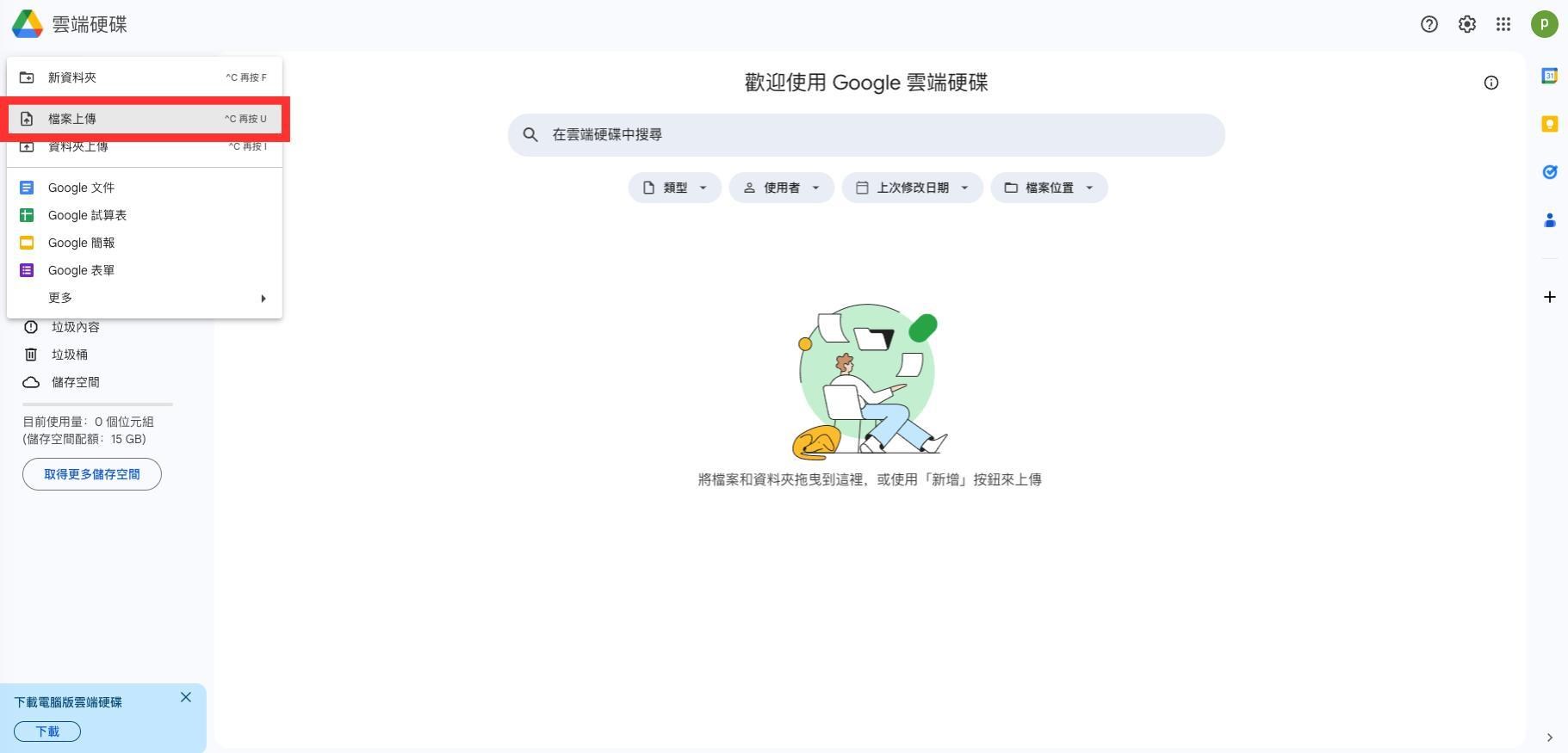2.前往「Google 雲端硬碟」