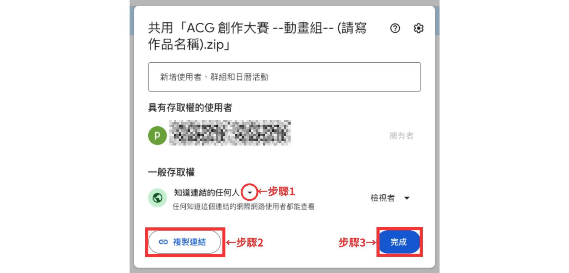 步驟1:將存取權改為「知道連結的任何人」