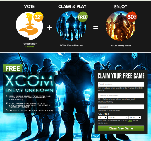 另外,Green Man Gaming 為了贊助「Golden Joystick Awards」投票活動,釋出了《XCOM:未知敵人》的免費遊戲序號,只要到本文下方活動頁填寫基本資料然後與 Steam ID 連結即可領取。