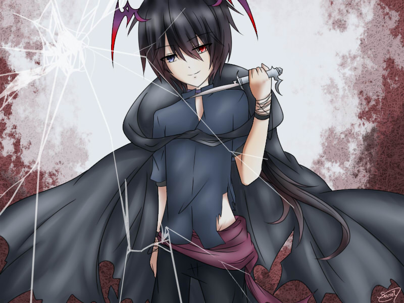 外貌如圖所示,黑長髮異瞳。