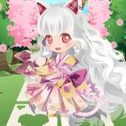 白色的長髮 紅色的眼睛 穿著白色點藍色的短裙和服 外貌是12歲少女