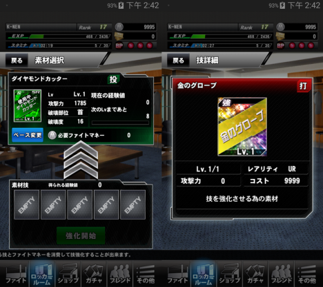 在選手室中選擇技選項就可以進入強化畫面,這邊可以選擇自己的愛用招進行強化,而強化可以用一般多出來的招式卡或者強化專用的強化卡進行強化哦。強化到了最後就可以在技能進化頁面進行招式的進化,成為破壞力更強大的一招。