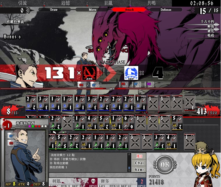倒數三回合閃閃上場,使用死獸的槍3移動1劍3發動一穿兩次