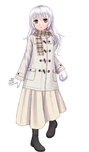 外表形容:銀白色秀髮引人注目、帶魅感的臉蛋露出鄰家女孩包容的微笑、纖細的身材包在衣服底下,用慾望的目光去看會發現那誘人曲線很容易滿足大多人。
