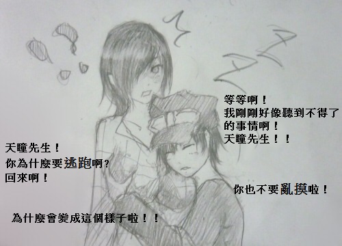 「可以告訴我你現在在做什麼嗎?論月同學?」這話不意外,是由看起來很死板,實際上也是很死板的天瞳先生說出來的。