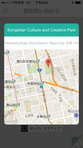 如果說真的找不到路了,下方有個【迷った。ギブアップ (迷路了。放棄) 】的按鈕,只要按下它,就能夠請最近超紅的叫車服務系統Uber優步派車衝去拯救你!(台灣能不能通用還不確定@@)