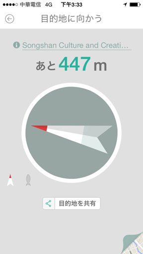 順利抵達目的地囉!指南針真的很簡單明瞭,當然有時候還是不免會把地圖打開來確認一下自己真的沒走錯路XD
