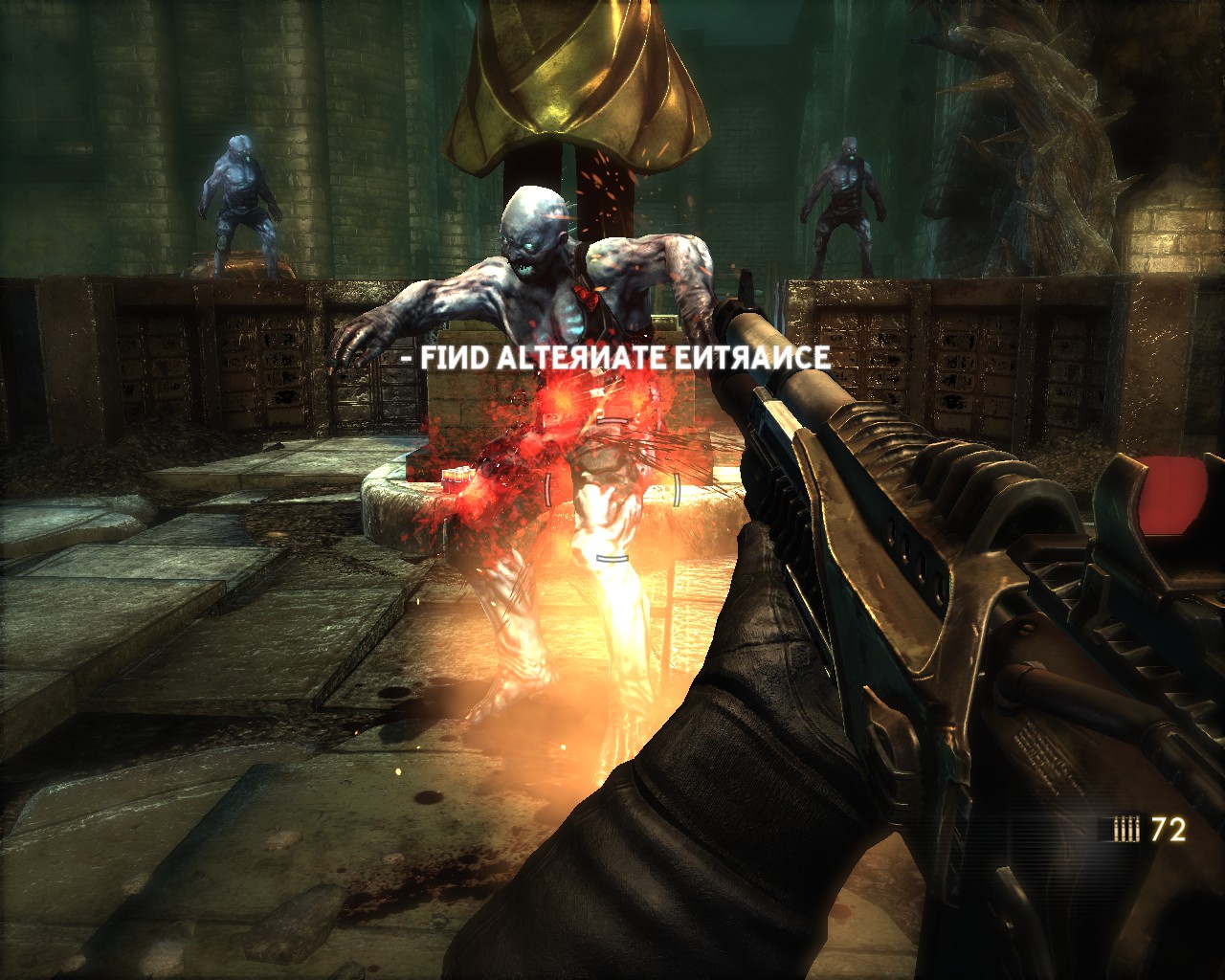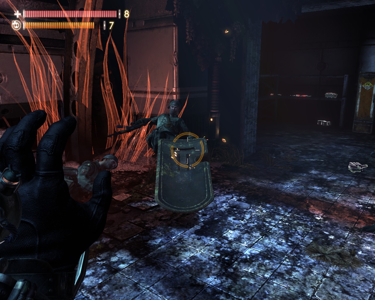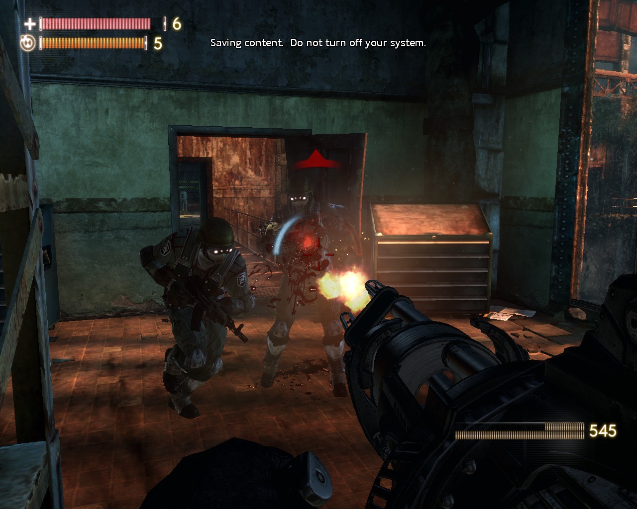 TMD理所當然的也能運用在槍戰上,類似《生化奇兵》或者《黑暗領域》般的異能槍戰,除了開火射擊以外,還能利用TMD左右戰場,舉凡衝擊波、時間停止力場、直接老化敵人等等,槍戰體驗別有一番趣味。武器種類則較為陽春,手槍、步槍、散彈、狙槍,不過都充滿科幻風,外觀花俏精美。敵人類型也富有變化,人類敵人如一般戰鬥員、防暴盾、狙擊手、鏈砲重甲兵、飛彈兵,怪物也有數種不同類型,愈後期愈棘手,也有幾場大怪物BOSS戰。
