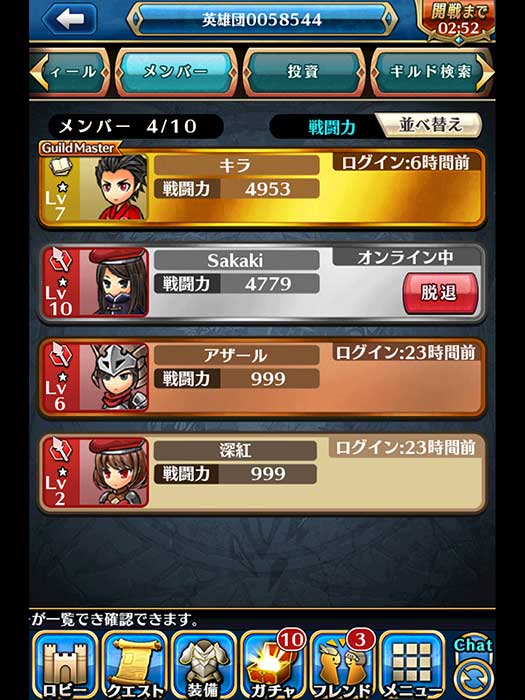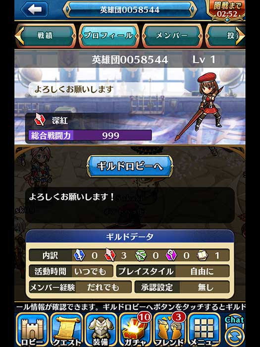 藍色框框:表示剩餘多少時間開始公會戰,可以點進去觀看對手的情報。