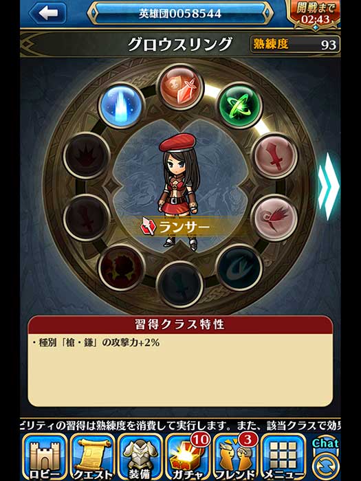 持有長槍、鐮刀類武器有職業加成。