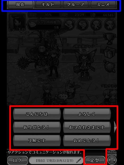 假如想與旁邊的人說話不需點ログ,直接在下方空格就能打字了。