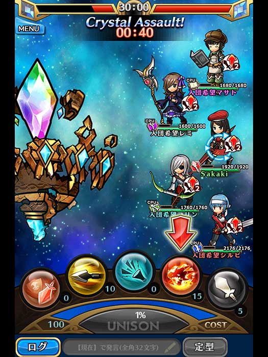 左下是與朋友一起組隊,假如好友沒進來,則會由電腦操控好友的角色幫忙戰鬥。最多五人一同戰鬥,假如沒組滿會由電腦或路人代替。