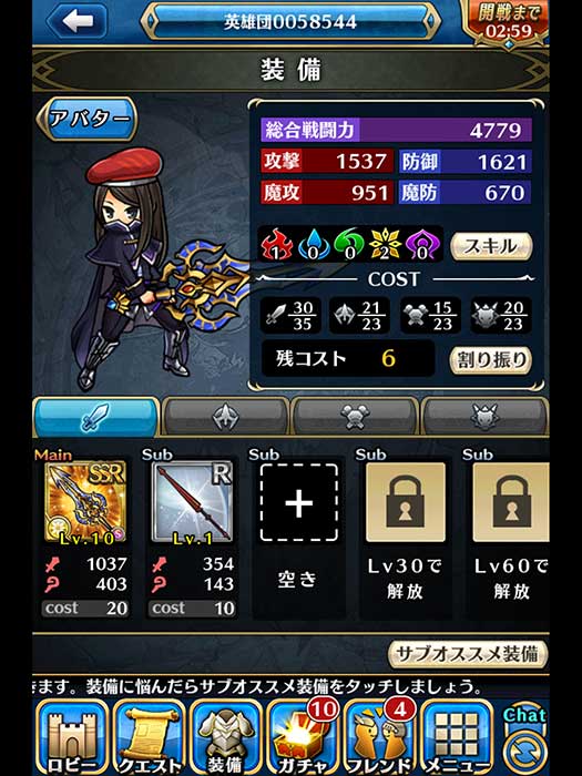 裝備分為武器、頭盔、鎧甲、怪物,各自有各自的COST限制。