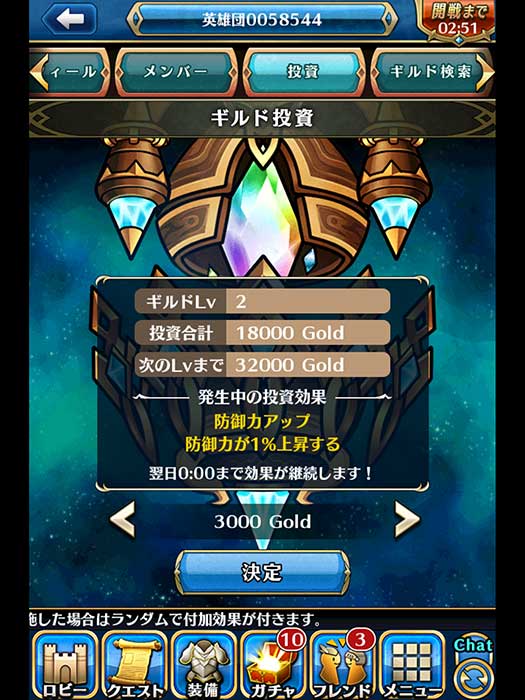 水晶等級必需花費金幣才能升級,投資的同時可能可以得到隨機的BUFF增益。