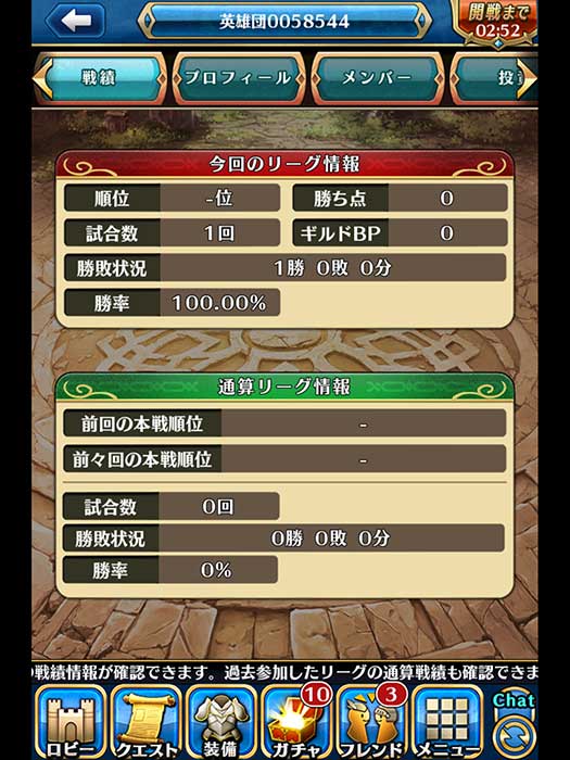 下圖表示公會當前戰績,以及之前本戰的戰績...等。