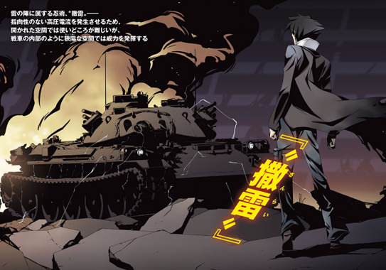 他善用各種槍炮武器,能使用發動全身之「氣」的紫堂流忍術。