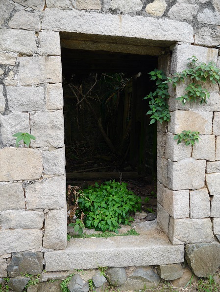 (許多石頭早已經剝落。植物直接從屋內長到屋外。)