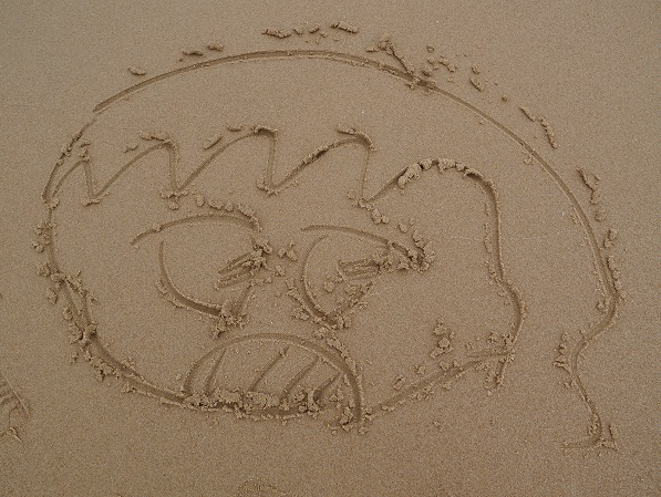 (沙上作畫也是闔家歡樂的遊戲之一,不過我的水平大概就這樣而已。)