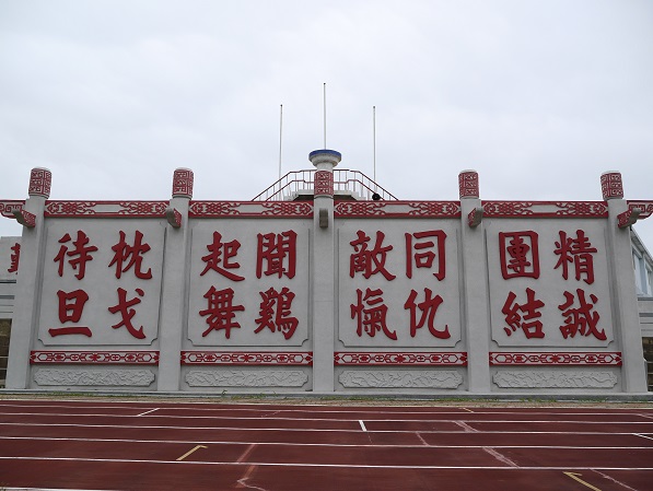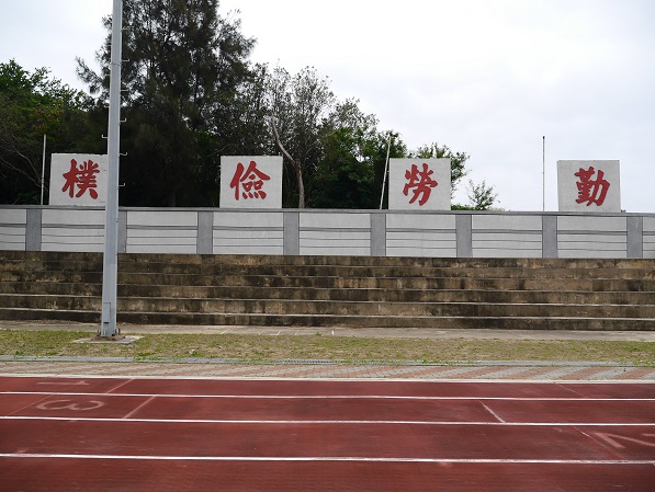 在一個一般的運動場、我從小玩樂的運動場、居民散步的運動場,存在各這種激勵人心用的字詞。