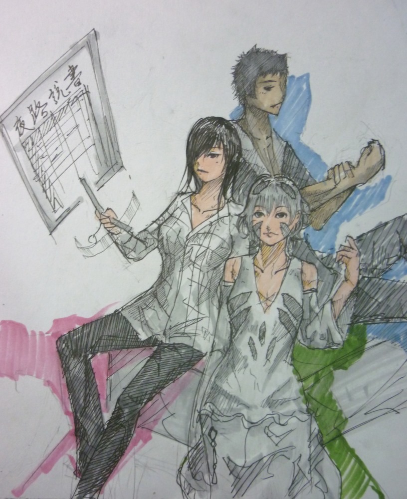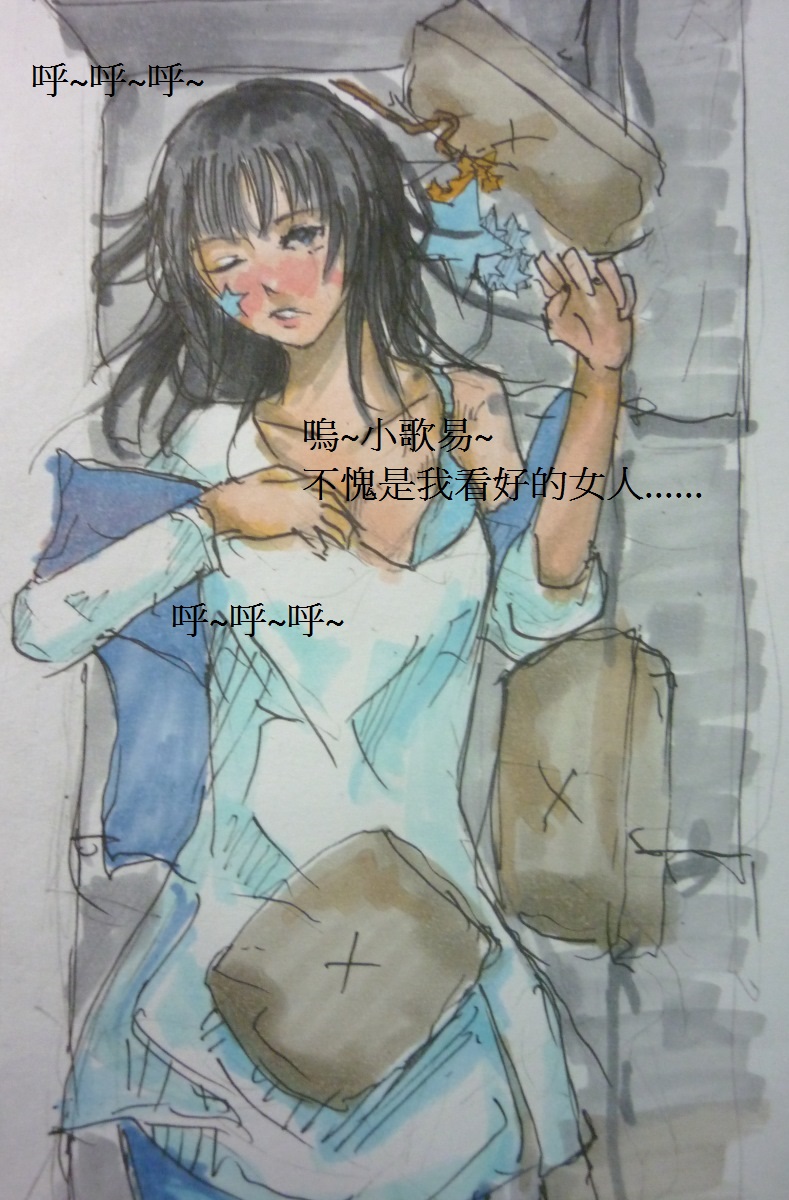 (特別說明一下,論月手上拿的是手機,然後那片是螢幕投影,不是拿著木牌!畫完之後實在覺得那裏是大敗筆,別提了。)