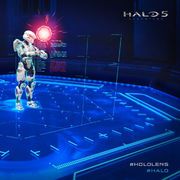 接著體驗者們被引導到另外一個有看圓桌的指揮室,而你會在桌子上看到Halo的全息影像