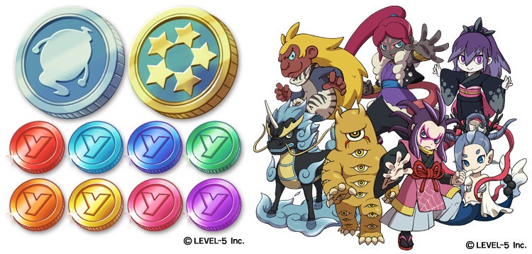 配信內容:容易轉出 S 級稀有妖怪特別最高級的硬幣「特別幣 1 枚」、還算容易轉出 S 級稀有妖怪的稀有硬幣「5 星幣 1 枚」、「妖怪轉蛋幣 8 枚(紅、黃、橘、粉紅、綠、藍、紫、水藍色幣各 1 枚」