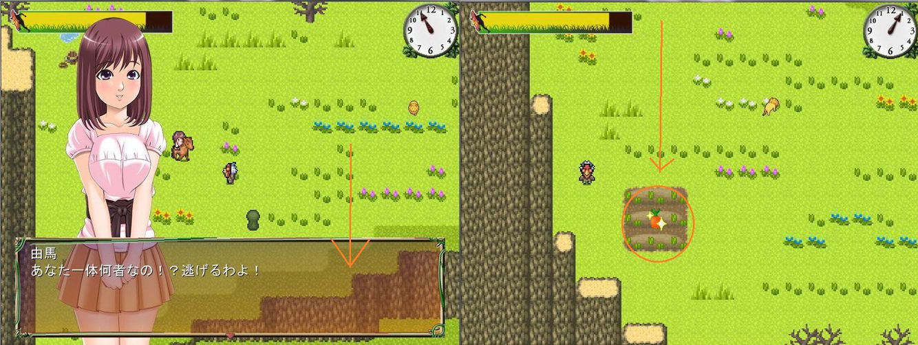 由馬:第一次發現由馬,她會騎馬逃走,並顯示需要紅蘿蔔,才能設下陷阱讓馬停下來,紅蘿蔔就在同地圖草原下面(如圖示),進階任務是要玩家找到極大的紅蘿蔔(在森林)再交給她,便完成任務。