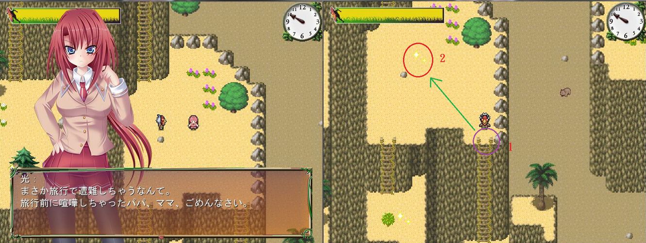 岩場)、千夏(媚藥-山、平原)、心(夜晚有鬼時回房子左邊捉她)(食料-