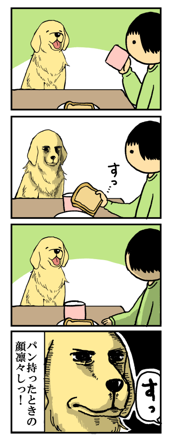 期待的眼神 「拿起吐司眼神就會變得犀利」 @mamekichirou