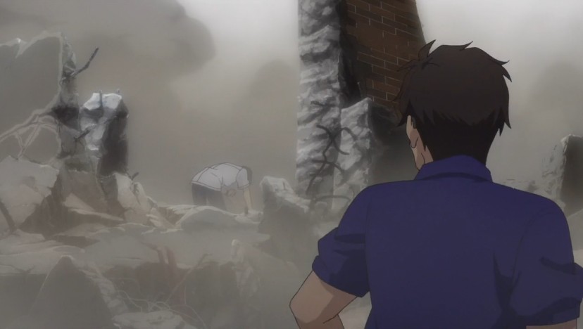 這時有宇們才剛趕到步未所在的中學,卻已經無法阻止一切了,有宇不顧友利的阻止,衝上前在瓦礫堆中尋找步未,此時旁邊的牆壁塌落下來。