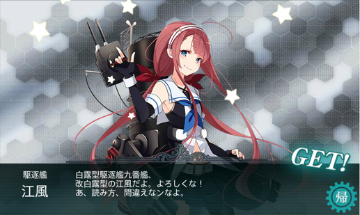 突破E2的同時,也迎接了新顆伴『江風』的加入哦~(雙馬尾讚讚的!