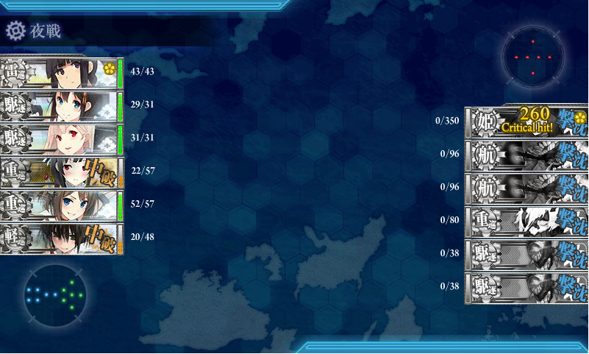 面對這個耐久是已經突破天際的500,魚雷發揮不了的情況下,戰術仍然是在夜戰決勝負!(抱歉沒有川內出場的機會