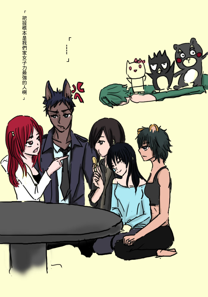 「你看我們家哪一個人有女子力了,大姊論月都交女朋友了,我也都在玩遊戲,堂花根本大叔,小直也是帥哥。所以這故事才不是後宮故事!!這是逆後宮!!!」小魚一個一個慢慢數,論月在一旁興災樂禍的喝著茶比讚。