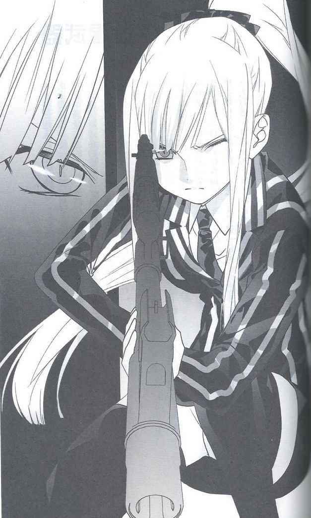 首先,據我這邊粗略統計,共有十個錯字、三個意義不明的空白、一句話突然變成第一人稱、句子未完成就跳下一行造成中斷,還有從頭到尾都只用逗號這種國小作文寫法。說實話,這些問題比起翻譯來說真的都是小問題,當然我也不否認青文徹底讓我見識過一本書可以爛成怎樣。在七月的時候,我曾寄過一封信給他們,不管是不是客服人員的回答,那個回答就是代表「青文出版社的立場」。 我只給了一個簡單的二選一問題:「八月開始的新書你們是否會認真以待,如果不會那我就摸摸鼻子不說什麼,頂多以後不再把青文的書列入自己的書單」,不過,青文這邊給我一個相當肯定的回應。當然,我是抱持著半信半疑的態度,但八月那幾本新書的確給我有一股他們真的有認真對待的想法。 ……才過不到一個月,這本《血腥武器》雖然稱不上嚴重,但卻是青文過去以來常常發生的問題。也就是說,雖然還不至於背信他們答應的承諾,但卻已經開始搖搖欲墜。我知道有些新讀者無感,但要知道,青文現在的品質可是歷經許多人的犧牲才建立起來的。想當初那印刷品質,看完後手指還會變黑呢。 想想看,買一本書主要是來享受,而不是來受罪的吧?這時有人會問,既然知道會受罪,那還買來做什麼?這種質問根本矛盾,誰知道這本書裡面會是這副德性呀!當然,也有人會問,明明知道這家出版社就是這樣嘴巴說說,為什麼還要繼續買來受罪?喜歡的作者就是給他們代理,你說我們要怎麼辦?啊啊,一定還有人會說,出版社能代理這些書我們就很幸福了,還要挑剔……請問這種品質有沒有代理有差嗎?還不如把機會給別家。輕小說這塊餅只要步入軌道就是好吃,一堆特裝貴得嚇嚇叫還不是一堆人願挨。 這些話大家看看就好,只是純粹闡述我個人一直以來累積的不滿,以及信賴一再被踐踏的失望。回歸正題,築地俊彦這四個字我想許多讀者不陌生,畢竟他的作品也很多,足以擠上坑王的寶座。今天要介紹的這本《血腥武器》是他在集英社開拓的第一部作品,故事內容主要在講軍武。 我過去曾有短暫期間小試了一下身手,寫了一部目前暫時被我放置PLAY的軍火故事,因此知道這東西到底有多難寫。寫太深入變成一堆專有名詞轟炸,寫太簡略……那拿什麼槍都可以吧?這也不太能稱之為軍火小說。本作在感覺上偏向於後者,軍武方面的知識相對簡略,僅有意思意思一下列了專有的武器名稱,細節幾乎隻字未提。當然,沒有名詞轟炸就會變得很好讀,但同時也會變得很LOW。 本作以軍武為主打,但說實在遮上名稱,單純用手槍、突擊步槍來表示我也覺得沒差,因為不論是武器外型、武器風格,以及如何透過武器特色來帶出非常有味道的交戰故事,本作各方面來都不合格,僅拿槍開火如此而已。而且,插畫也如同內文那樣LOW,明明是軍武題材,但關鍵的武器卻沒什麼感覺。看看ふゆの春秋老師至少都有畫出細節。好啦,我知道彩圖還是有點差。附帶一提,右邊這張圖片是我自己掃的,有點歪有點糊還請見諒。 本作的故事在講述明明是高中生卻是軍火商的主角,為了不讓武器造成無辜傷亡,決定回收身為軍火商的父親過去一直以來販賣過的所有武器。他知道自己很矛盾,明明是軍火商卻是要回收武器,同時也知道要在不傷害人的情況下完成這理想有多天真,但儘管如此,他也要與夥伴們一同前進。 ……大概就是這樣的作品,其實我覺得本作算是有點陽春。 首先是劇情部分,我看到後半部差點傻眼,尤其是轉學生那段。故事前半段剛好有個轉學生進來,而且一看就知道背景有問題,男主角也查了一下那位轉學生的身世……對方似乎不太好惹。但是,到後面才知道,原來前面指的轉學生是另有其人,而且從頭到尾都沒提過那個人原來也是轉學生。這像是我買了一台外型亮麗的車,之後才知道是二手車,這種事應該就先告訴我吧?可想而知這心情會有多糟糕。 我認為要擺弄文字不是先神隱後補票,而是盡量巧妙地引開讀者對於這塊的注意力,之後再讓讀者知道原來此人非彼人。這邊的安排我覺得有點不太好。再來,故事中的軍火交戰其實相當歡樂,沒有緊張的氣息、沒有壯闊射擊對轟的畫面、沒有令人目不暇給的動作戲,而最要的是我真心覺得故事中的反派角色是白癡。 為了彰顯反派角色有多異類,明明已經把主角手到擒來,而目的很明確就是要殺掉他,結果最後還給主角許多活路。然後為了彰顯他的厲害,還用「他是不會只設下一種陷阱的狠角色」,解除完的炸彈卻是引爆下個炸彈的引信。……剛開始全炸了不就好?然後玩起一個便當吃不死那就再給你吃第二個這種伎倆。而且既然那麼厲害,應該也會料到主角身邊有幾個非常誇張的夥伴吧?沒考慮到這點還說是狠角色?嘛,但這是劇情所需我也不能說什麼。……畢竟過去很多好萊塢的槍戰電影,我也是看交戰看得很爽,劇情完全沒進入腦袋。 然後,這邊我還要說的是,軍武這是一個相當現實的題材,因此把過於理想的東西加諸於上會有種奇妙的感覺。這不是不好,而是可能導致在故事中提倡的現實會失真,最後變成四不像的東西。本作的主角十分理想,身處危險當中還不帶槍自衛,沒想過自己死在這裡的話,不是會導致更多人犧牲嗎?而且他還靠著友情和可以前進的未來去說服一個看過慘烈現實的少女……嗯,好吧,這就是王道輕小說男主角的精神。 這裡可能有人會說我標準很高。不過,一