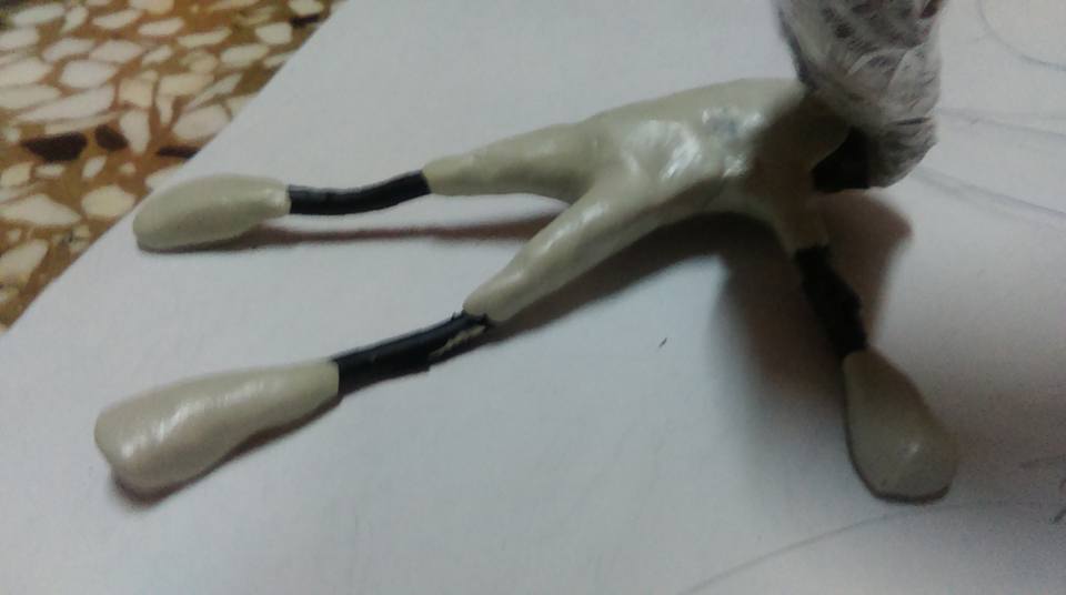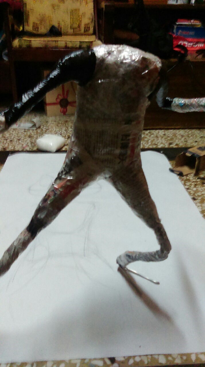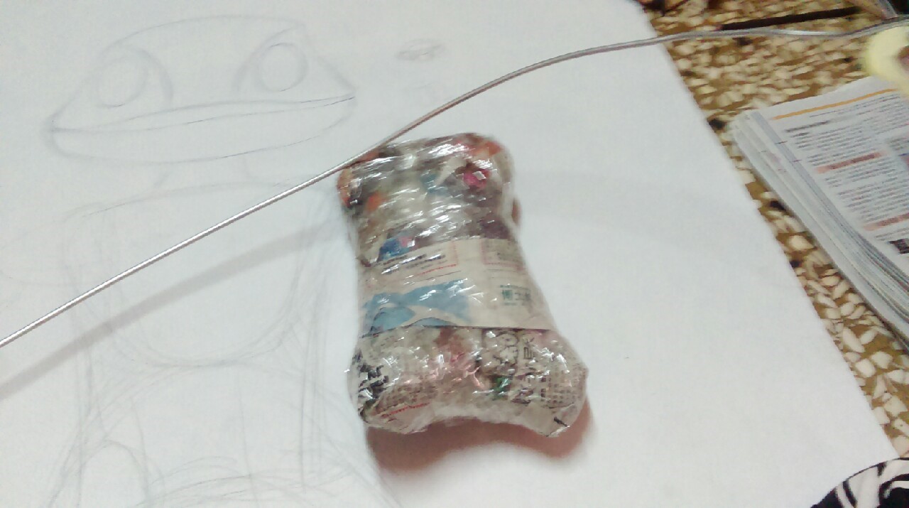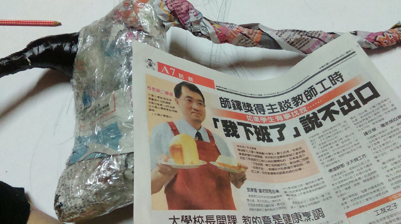 因為手跟腳需要延展,只用報紙會太軟,所以去買了超硬的鐵條 先做骨架在包報紙