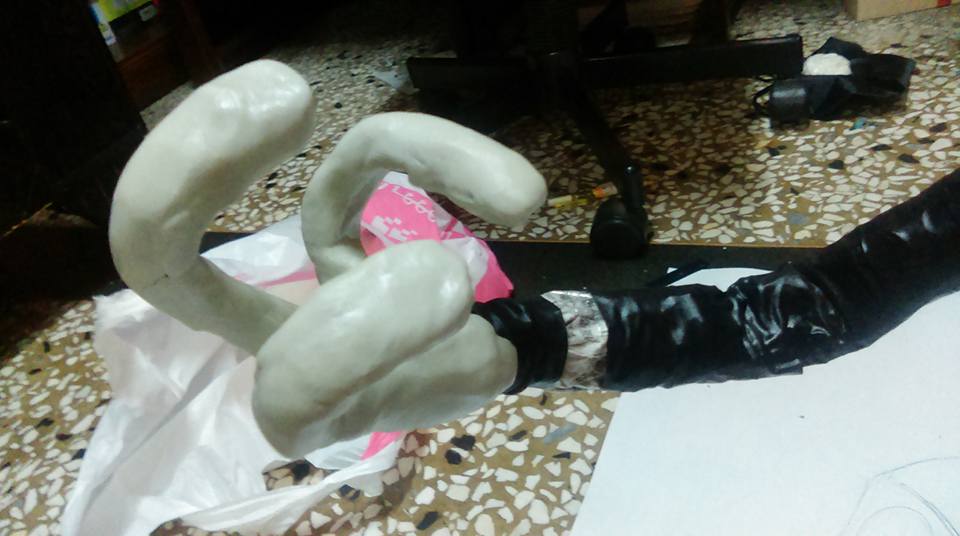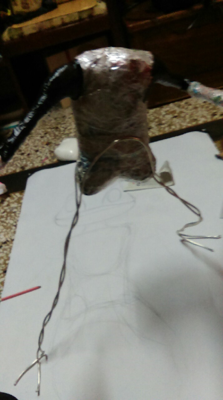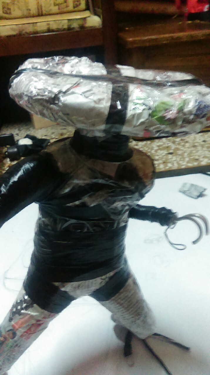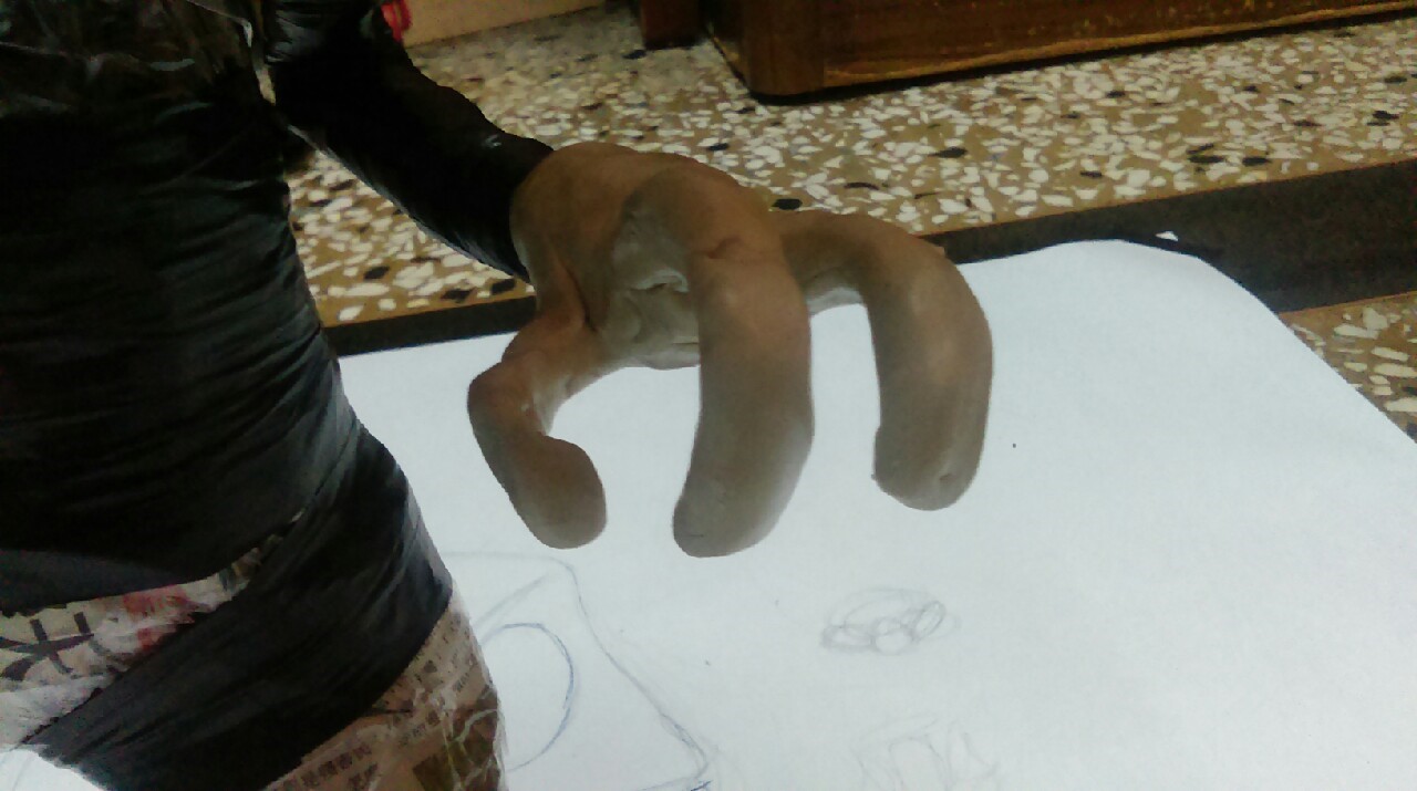因為手跟腳需要延展,只用報紙會太軟,所以去買了超硬的鐵條 先做骨架在包報紙