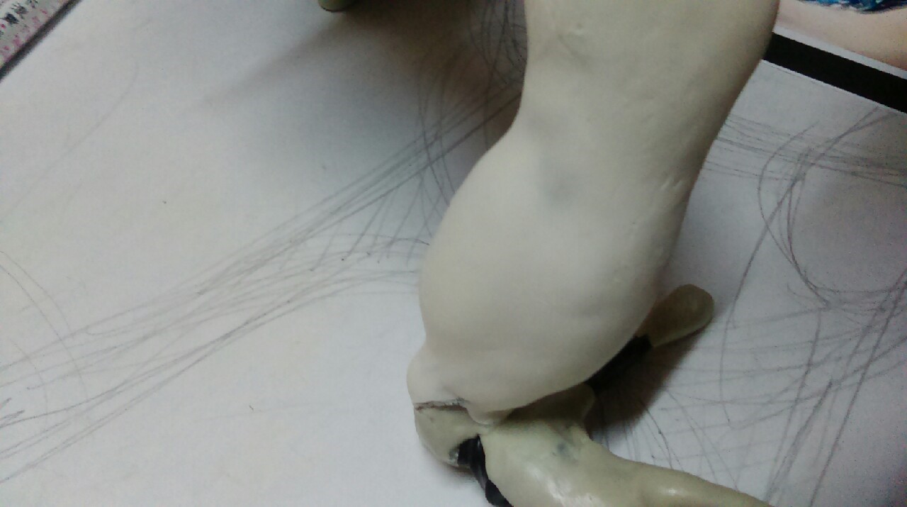 在來用塑鋼土把手指的行捏出來,因為塑鋼土比較堅硬,非常適合在關節處製作骨架使用,