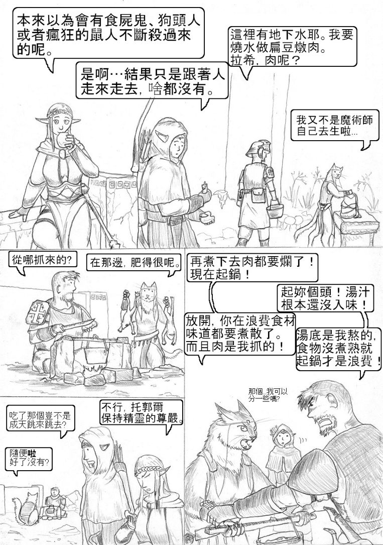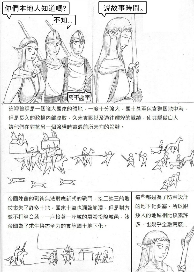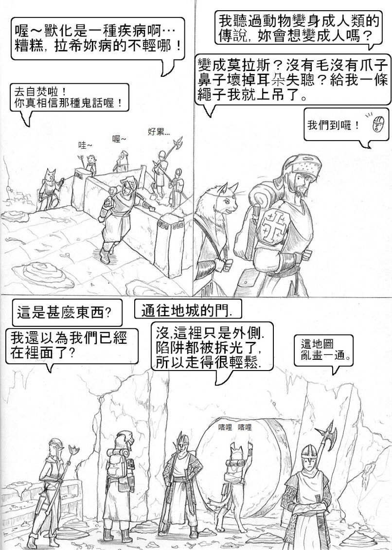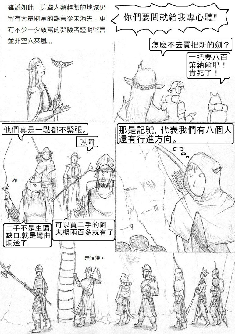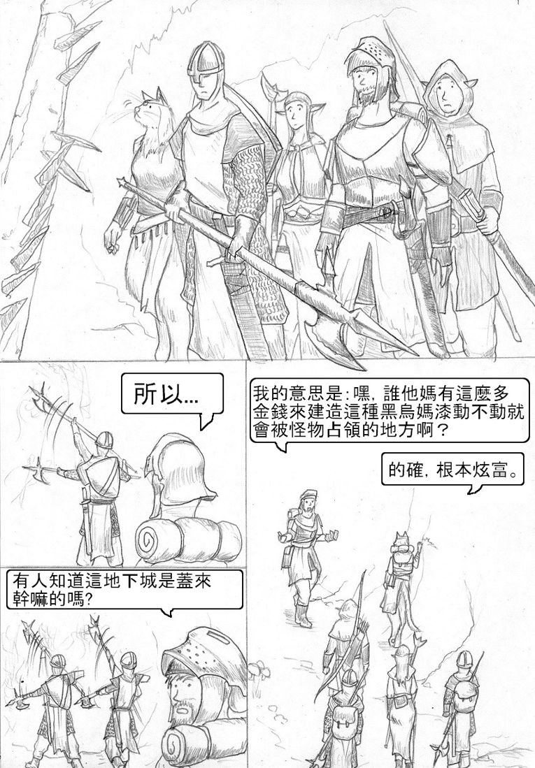 好久沒看到你的作品了,總算又看到比蘭德續篇啦!XD 這篇算是拖稿拖很久嗎?因為我好像沒有看到你有設定下回推出時間~ 設定個推出時間會比較有督促的動力啦!(不過你再怎麼拖稿也沒有我拖得久=.=") 這一篇雖然沒有幹架但是很有趣呢!光看著隊伍裡面的成員互相吐槽就夠有樂子了~XDDD 這段故事背景蠻有意思的,讓我想起羅馬帝國時代?(整個地中海都是國土範圍) 不過,國土地下化擋得住敵軍攻勢嗎?應該起不了太大作用吧?碉堡也是會被攻陷的~ 結果整段路都沒有敵人,連陷阱也沒有?XD"枉費一堆人全副武裝準備幹架,結果... 就像有人帶了反坦克飛彈,結果沒有遇到戰車XDDD"你的人物和背景越畫越熟練了,讚喔! 尤其是那一張爬樓梯上去的畫面遠近透視感相當出色,效果很好耶~ PS:啥?!樓梯是給娘娘腔用的?!糟糕,我都爬樓梯的說...XDD" 拉希喜歡吃生肉吧? 所以沒煮熟對她而言沒差?還有~拉希不是獸化而成的獸人吧?是天生就是這樣吧? 最後,’和’談的合打錯囉!XD 注音輸入法常會這樣XD