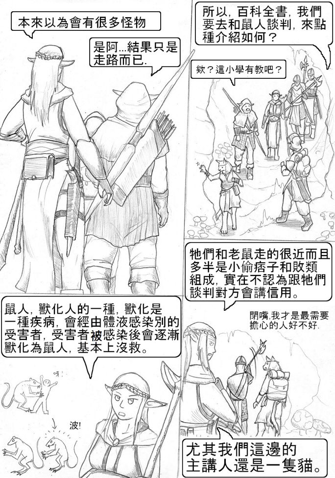 其實因為神光大都沒啥動態, 所以一直不太確定還有沒有常上巴哈 原則上我不發草圖...因為讀設計時曾經因為草圖的問題被噴到天上去 , 總之...嗯, 既然要發表就該發表畫好的圖, 才是尊重自己的作品. 然後我設定稿...嗯....再等等, 都還很草 0.0 原本我是預定兩個禮拜出6張的 , 不過遇到開學~壓呼~ 打架的部分,現在覺得好像不需要很多...現在看海賊王 死神 家庭教師之類的 , 隨便一翻滿滿的都是打架 ... 卻覺得很無聊 , 太多太麻木 , 現在認為適當就好 0^0 國土的設定有參考羅馬被匈奴電的僑段 , 而地城則是參考基督徒躲避阿拉伯人而蓋的那些地城為藍本 , 現實中的地城感覺就是超大的碉堡而已 , 路很窄,可是又臭又長又深. 背景?真的假的…啊感恩啦! > < 希拉吃熟肉 , 不過牠們種族比較注重食物的香味 , 而不太在乎舌頭上的味道 , 牠們味蕾只有人類的一半. 她也不是獸化的獸人 , 鼠人也不是獸化的獸人 . 精靈的知識有誤,不過他們不知道。