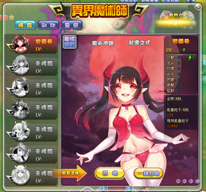 與其他網頁遊戲相比,這款遊戲我覺得最具特色的部分異界魔術師跟魔卡的功能,這2個功能除了會提升玩家的能力外,在角色設計上非常的可愛,異界魔術師需要藉由召喚來提升角色的能力,召喚越多次能力加的越多,記得常常去點一下。而在魔卡的系統上則是藉由卡片附身,提升角色的能力,卡片達到一定的條件之後還會觸發一些技能。