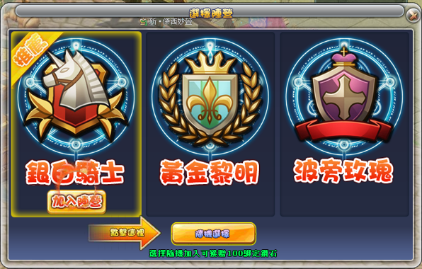 不知道要選什麼可以讓系統幫忙選,會拿到額外100的綁定鑽石