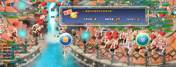 遊戲中在特定的時間會有在線活動進行,玩法眾多,而且獲得的獎勵也是相當不錯!其中最多人參加的就是泡溫泉跟答題,遊戲剛開服真是熱鬧阿!