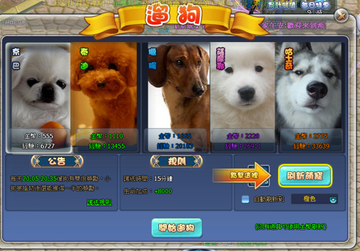 像我個人最喜歡的系統是遛狗,玩家藉由遛狗可以取得金幣跟經驗值的獎勵,重點是這些狗狗好萌阿!