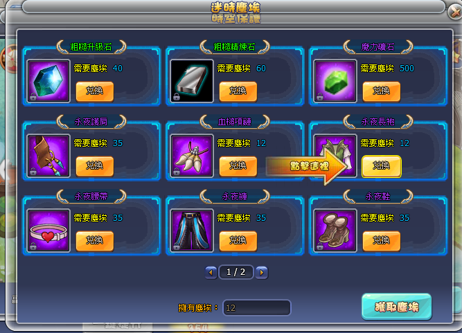 藉由通關時空寶庫取得塵埃可在這裡換取裝備