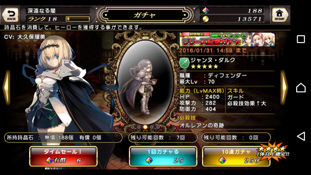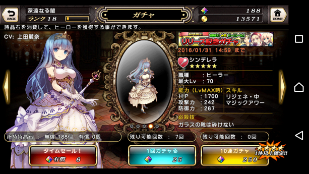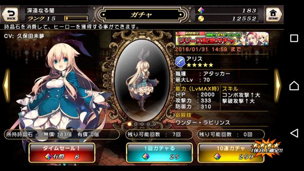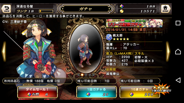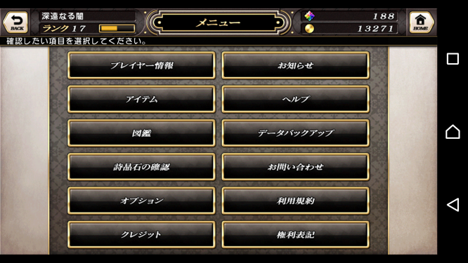 左:player情報、item、圖鑑、課金石頭數量確認、option、credits