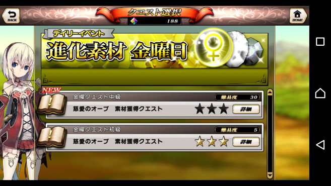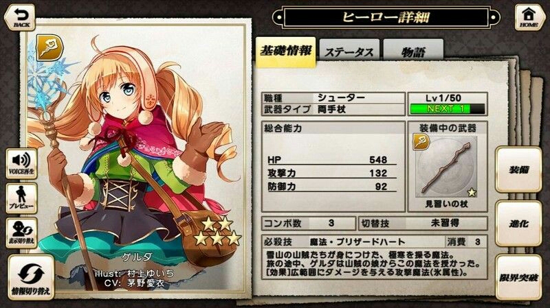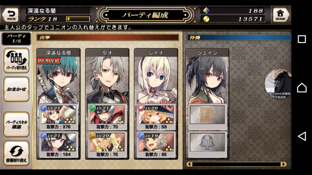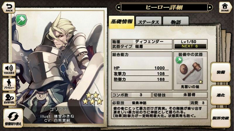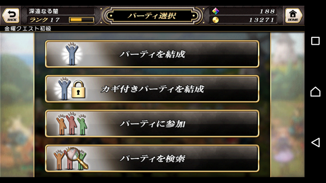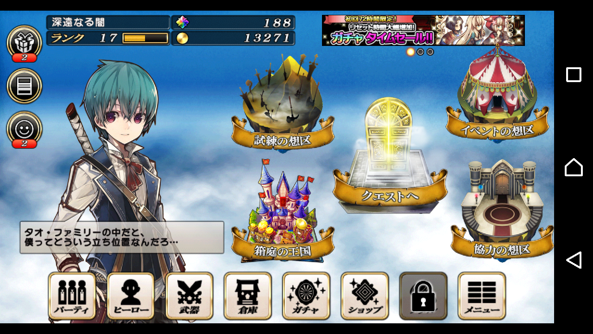 下方8個:party組成、角色、武器、倉庫、抽蛋、課金、medal交換所(主城lv4開放)、主目錄