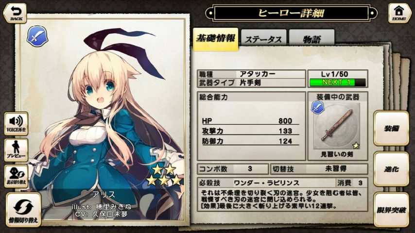 至於愛莉絲,活動十分靈活,被動技combo攻擊威力up(20combo以上30%增加),以及尾刀後威力up(一體1%,上限40%)