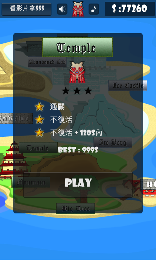 惡靈塔(Temple) - 被惡靈控制的邪塔,有許多惡靈火球以及邪刀,塔頂還有惡靈會朝動物們丟物品,請攀爬時務必小心!