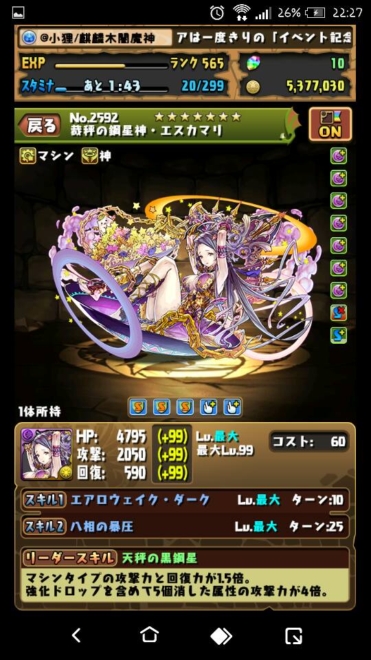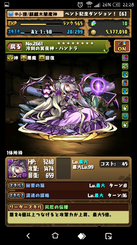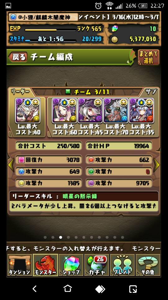21F 暗迦梨 : 開覺玄武技+小潘+開好友覺路 一共18顆暗 , 打掉約75% ,